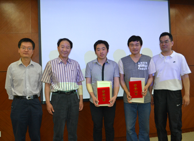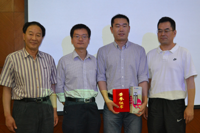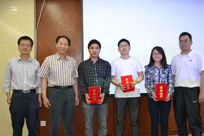 按会议议程,照明中心外联部部长刘哲在两名报告人做完相关学术报告后宣读了第七届学术交流会中评为优秀报告的获奖职工和学生名单。随后举行了学术交流会颁奖仪式,半导体照明联合创新国家重点实验室主任、照明中心主任李晋闽、副主任王国宏、副主任王军喜对照明中心第七届学术交流会获奖的优秀职工、优秀研究生颁发了奖励证书并合影。